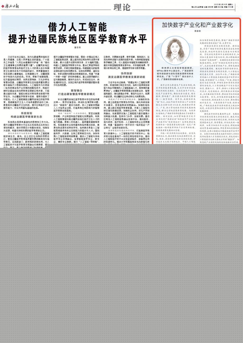 近日,《廣西日?qǐng)?bào)》“青年說(shuō)理”欄目刊發(fā)中國(guó)·永樂高131net李彥慶副教授理論文章《加快數(shù)字產(chǎn)業(yè)化和產(chǎn)業(yè)數(shù)字化》。文章從“不把一時(shí)差距視為永遠(yuǎn)落后”、“將潛在優(yōu)勢(shì)變?yōu)楝F(xiàn)實(shí)優(yōu)勢(shì)”、“強(qiáng)化數(shù)字經(jīng)濟(jì)發(fā)展保障支撐”等三個(gè)方面進(jìn)行了介紹。現(xiàn)將全文轉(zhuǎn)載如下。外宣稿鏈接:https://apph5.cloudgx.cn/article/sync1967727903722569728李彥慶:桂林理工大學(xué)商學(xué)院副教授、MPAcc教育中心副主任,廣西資源環(huán)境科技創(chuàng)新與綠色低碳發(fā)展研究智庫(kù)研究員...